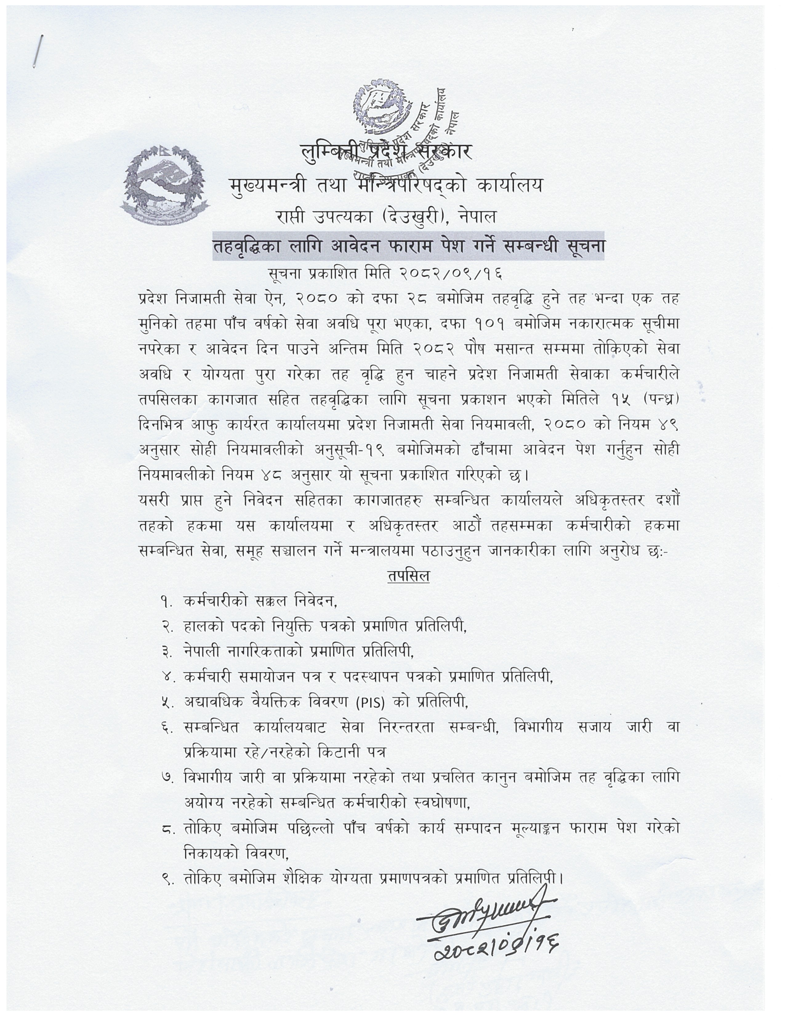 बढुवा सिफारिस सम्बन्धी सुचना (सूचना प्रकाशित मिति २०८२।०१।३०)